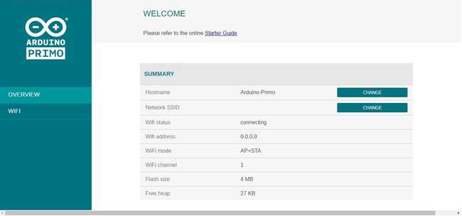 The Arduino Primo has a Web Panel that it can be reached in different ways: