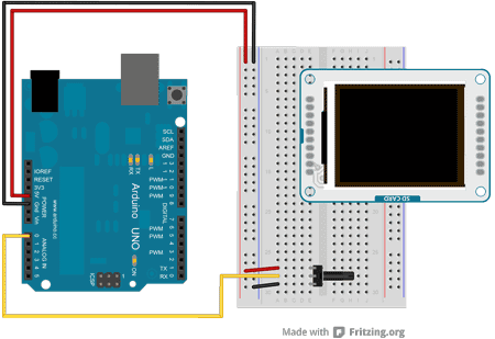 Connect the BL and +5V pins to power, and GND to ground. Connect CS-LD to pin 10, DC to pin 9, RESET to pin 8, MOSI to pin 11, and SCK to pin 13. If you're using a Leonardo, you'll be using different pins. see the getting started page for more details.