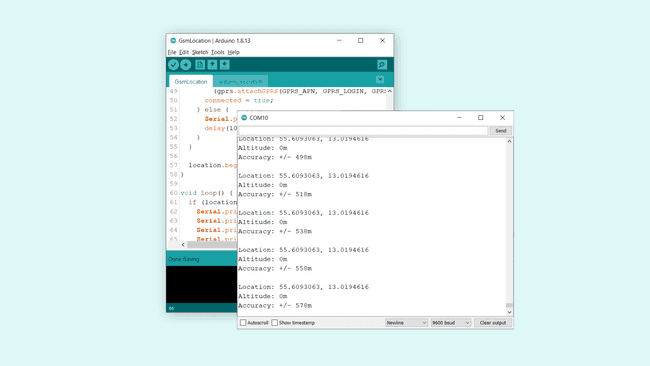 However, as GPRS is also connected to the Internet, the location can be viewed as an additional feature that can be used for projects that does not require high accuracy. When running the code sample in this tutorial, we started of with an accuracy of 868km (not very helpful), but after a few minutes, it was able to get within 200 meters (a bit more helpful).