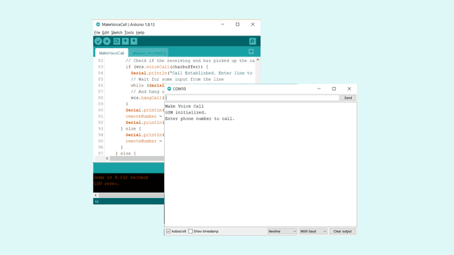 In this tutorial, we will use an example from the MKRGSM library called MakeVoiceCall. With it, we will set up the MKR GSM 1400 to create outgoing calls to a number of our liking. The example includes a serial interface that allows us to enter a number, place a call, and hang up on the call.