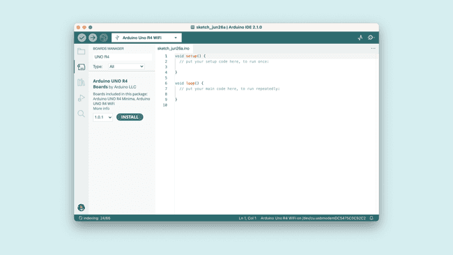A step-by-step guide to install the board package needed for the UNO R4 WiFi board.